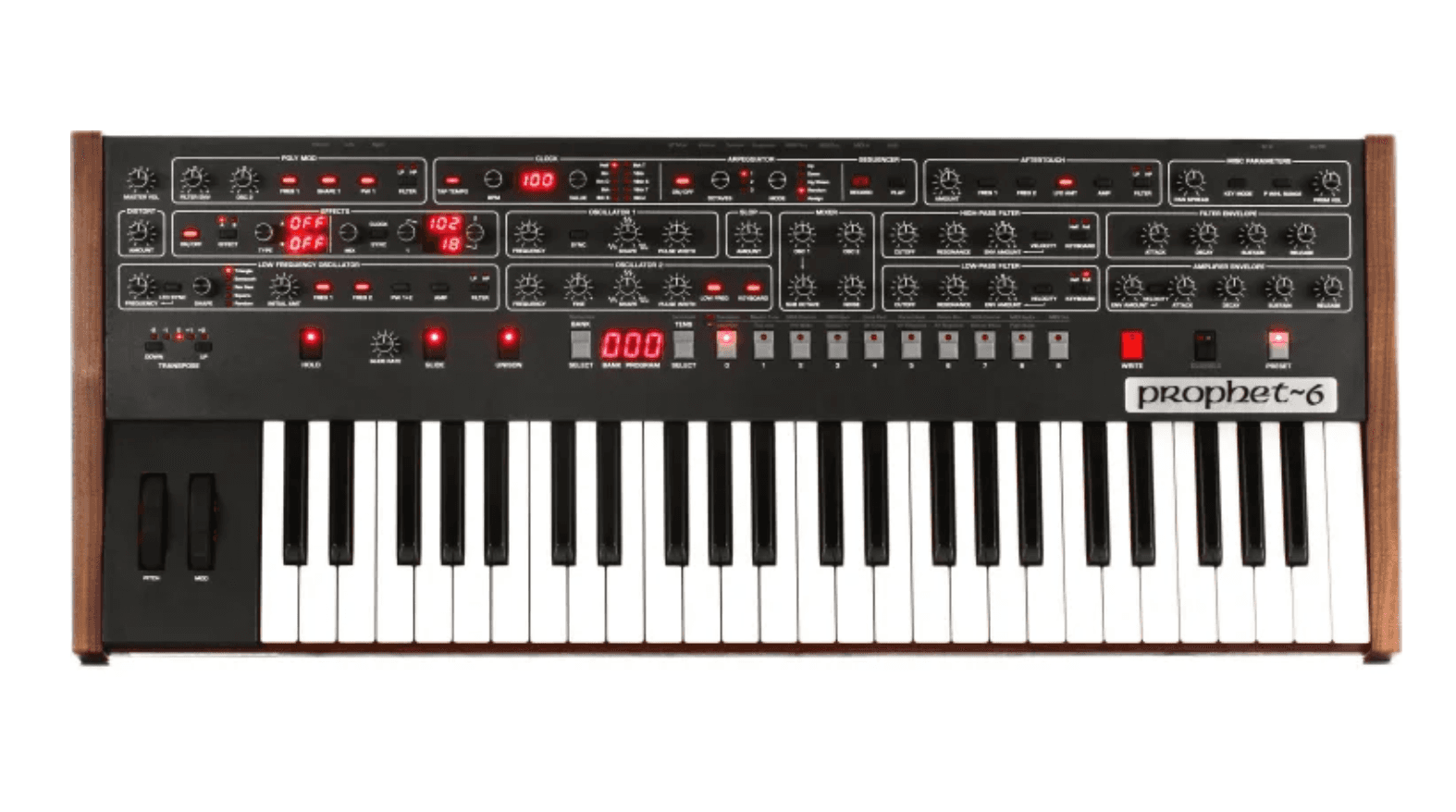 The Sequential Prophet-6 is Dave Smith's tribute to his groundbreaking analog polysynth, the Prophet-5. Says Dave: "It's not a reissue, it's vintage with a modern twist." Driving this 6-voice beast are two discrete VCOs plus a sub oscillator per voice. Other features are two discrete filters per voice, a studio-grade, digital dual effects section, analog stereo distortion, onboard arpeggiator and step sequencer, a knob-per-function top panel, and a full-size, 4-octave, semi-weighted keyboard with velocity and aftertouch. We Sweetwater synth aficionados are ecstatic over Dave Smith Instruments' Sequential Prophet-6. You will be, too!